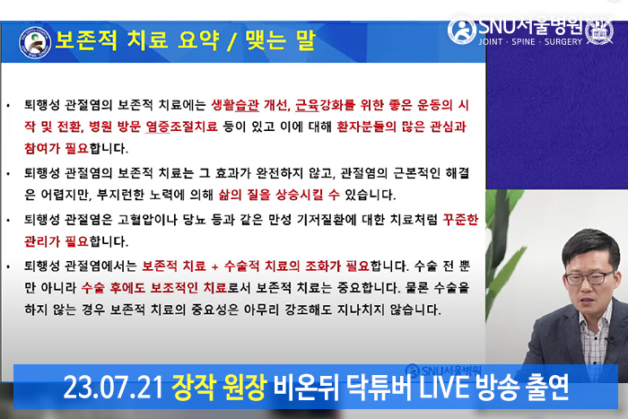 '퇴행성관절염 치료의 시작! 보존적 비수술치료' 에 대해서