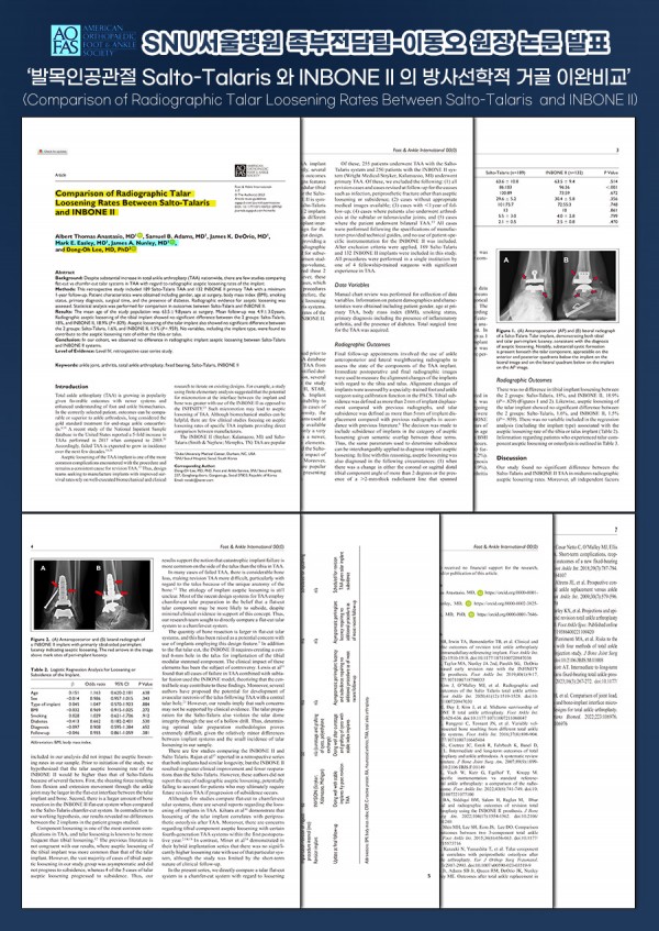 논문 및 학술활동 족부II 2023 미국 AOFAS 학회 논문발표(공동저자) 24.02.07 11:37 1,395 이전글 2023 SNU Orthopaedic Update(III): Foot&Ankle 심포지움 24.02.07 다음글 23.11.18 2023년 제33차 대한족부족관절학회 추계학술대회 연수 및 연구발표 24.02.07 목록