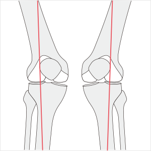 무릎의 앞쪽이 한쪽 방향으로